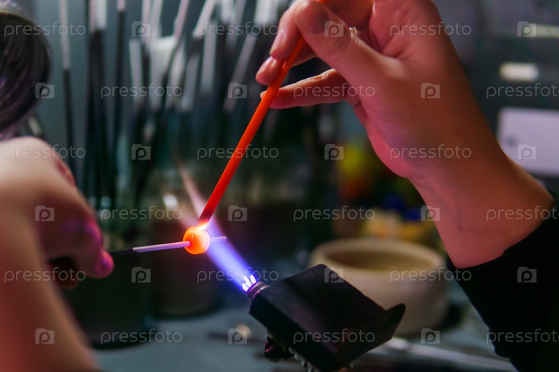 Изготовление стеклянных бусин вручную в стеклодувной мастерской