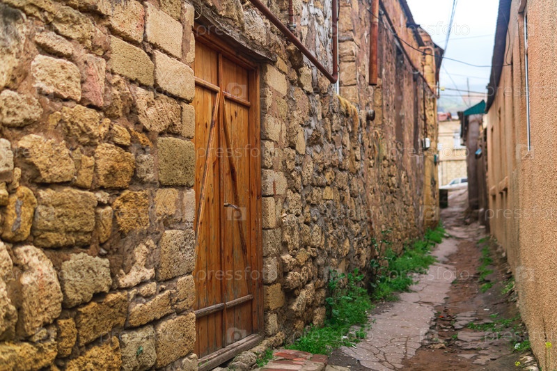 Дверь в узком переулке между домами в махаллях Дербента в историческом центре города