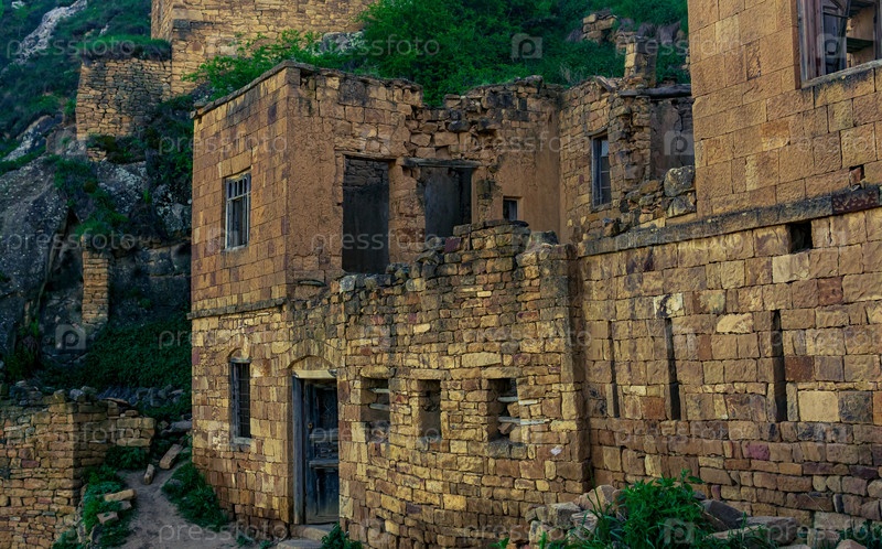 Полуразрушенное здание среди руин деревни-призрака Гамсутль в Дагестане