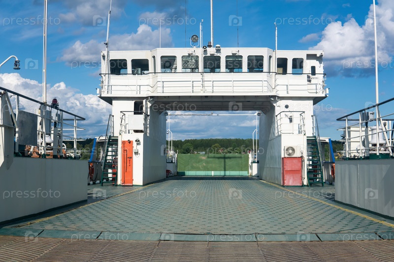 Вход на автопаром на переправе через реку