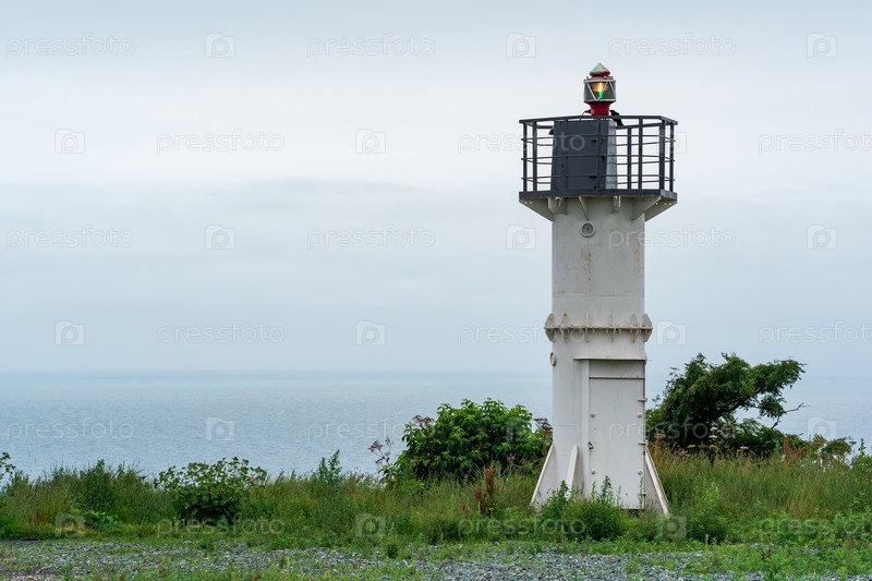 Автоматический маяк с секторным огнем на высоком мысе над морской гаванью