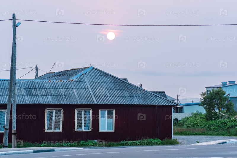 Облачный закат над деревенским домом