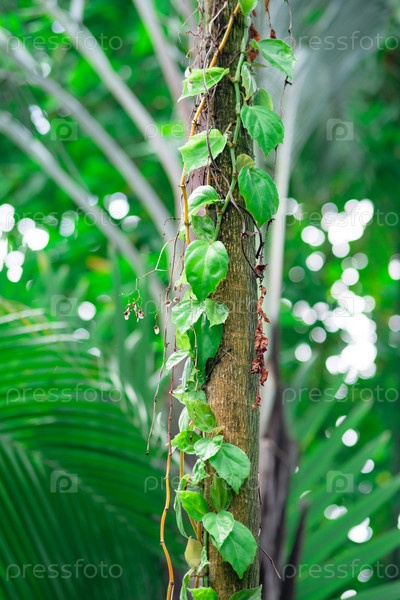 Вьющееся растение на стволе дерева в тропическом лесу
