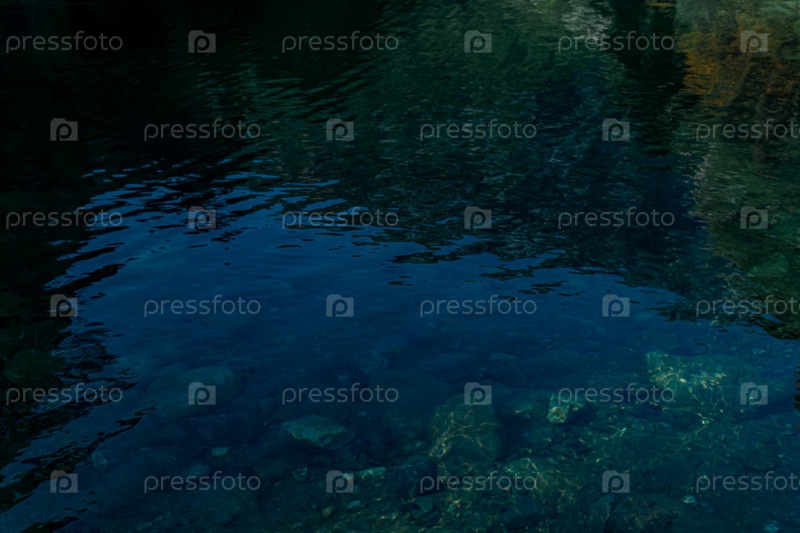 Волнистая поверхность воды ясного лесного озера с отражением гор и неба