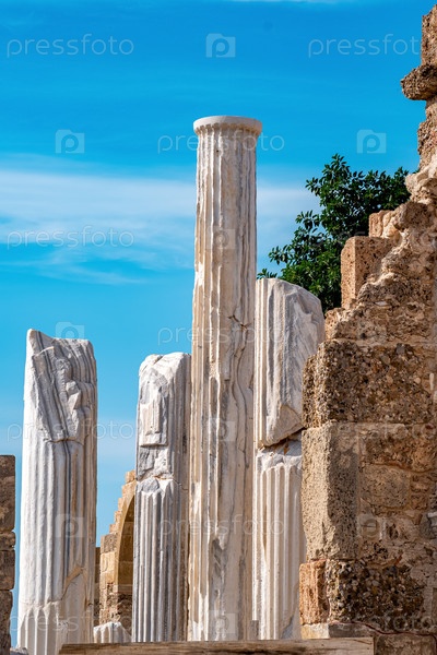 Красивые мраморные колонны на фоне неба среди руин храма Аполлона в Сиде (ныне Манавгат, Турция)
