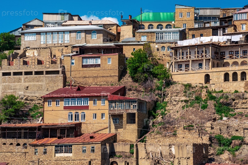 Дома на скалистом склоне в горном ауле Чох в Дагестане