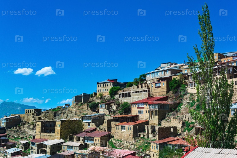 Дома на скалистом склоне в горном ауле Чох в Дагестане