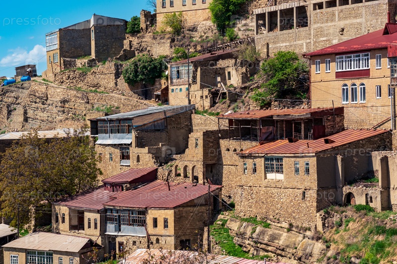 Готовые, строящиеся и разрушенные дома разного времени в древнем горном ауле Чох в Дагестане