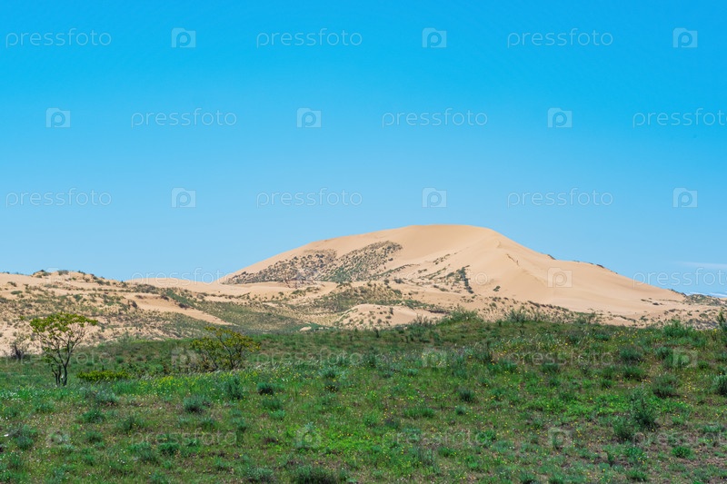 Полузасушливый ландшафт в окрестностях бархана Сарыкум