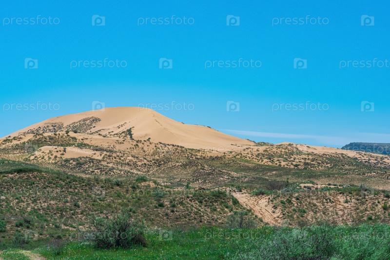 Полузасушливый ландшафт в окрестностях бархана Сарыкум