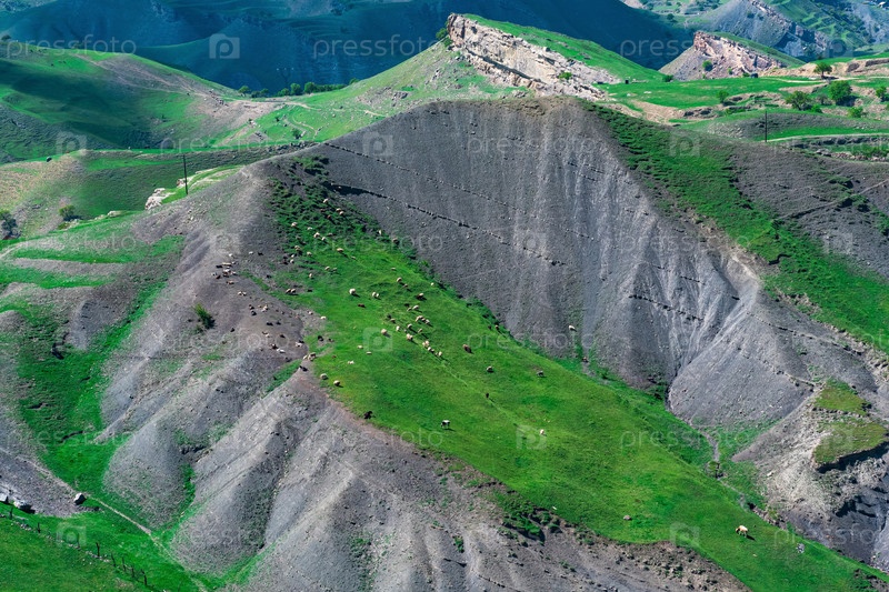 Альпийское пастбище со стадом овец, вид с воздуха