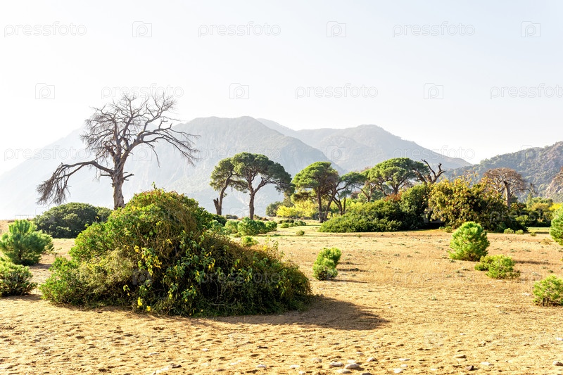 Тропический приморский пейзаж возле деревни Чиралы в национальном парке Бейдаглары в Турции