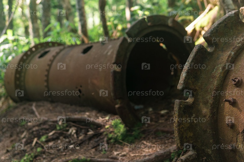 Остатки ржавого промышленного оборудования среди леса