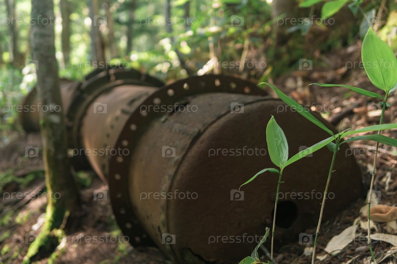 Остатки ржавого промышленного оборудования среди леса