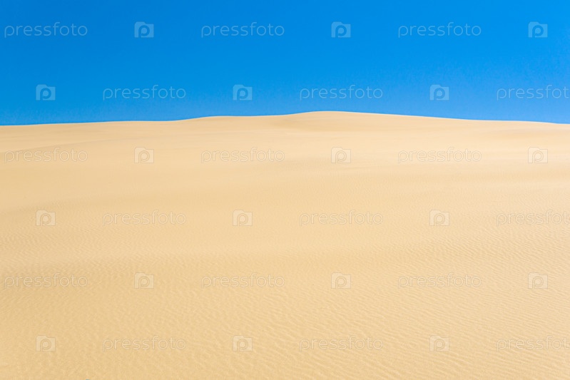 Пустынный пейзаж, песчаные дюны под голубым небом