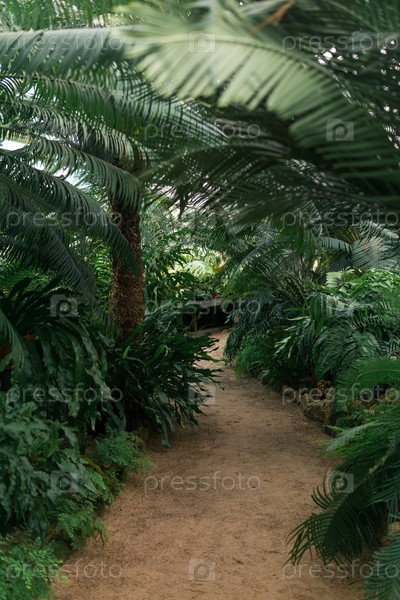 Интерьер большой оранжереи с коллекцией папоротников
