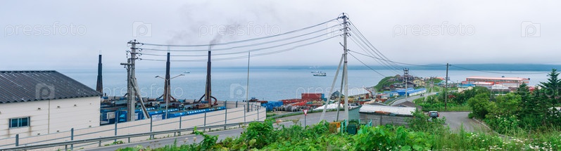 Дизельная электростанция с дымящими трубами на острове Кунашир