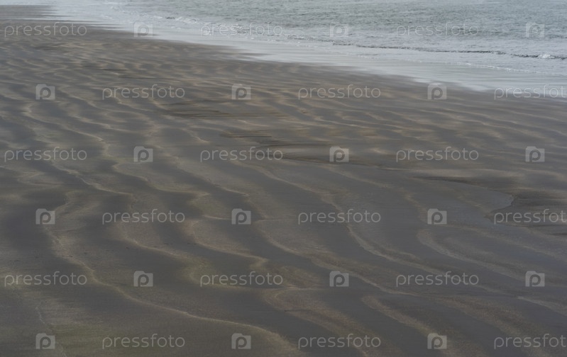 Пляж с черным вулканическим песком и волнами
