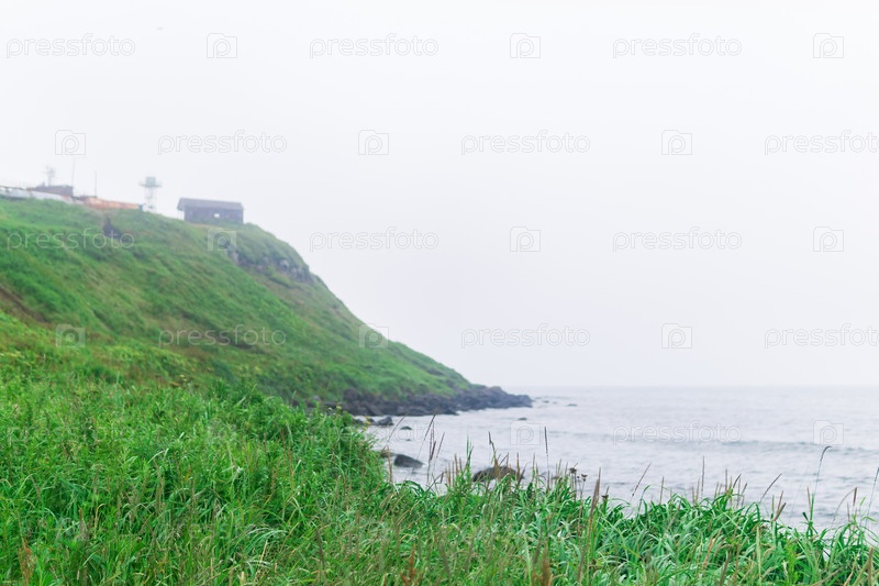 Размытый морской пейзаж, сосредоточьтесь на траве
