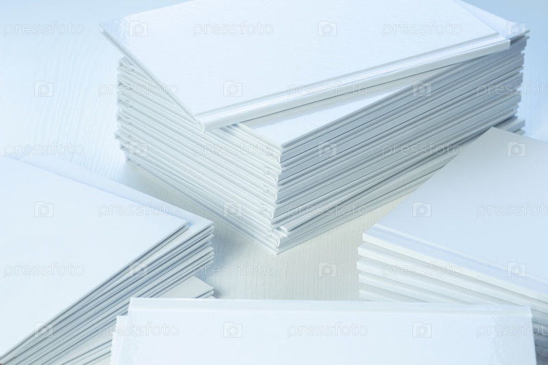 Стопки свежеотпечатанных фотокниг с чистыми пустыми белыми обложками