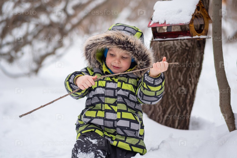 Маленький ребенок гуляет по зимнему заснеженному парку