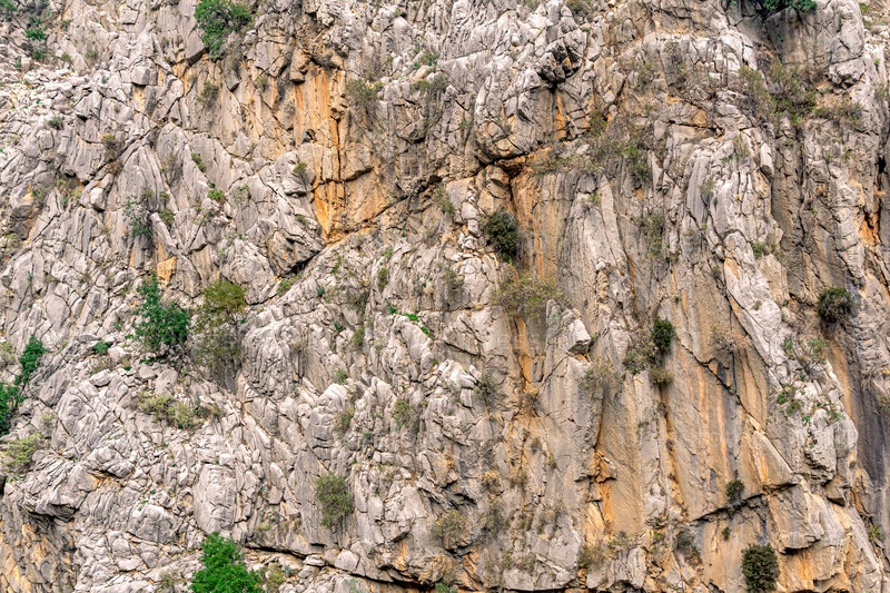 Пейзаж, текстура - отвесная скалистая стена с трещинами и растительностью