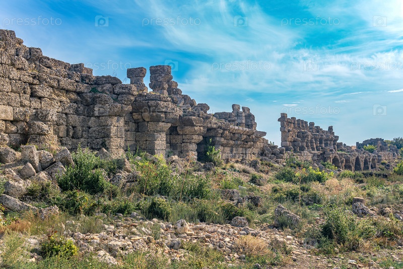 Руины древних городских стен в Сиде, Турция