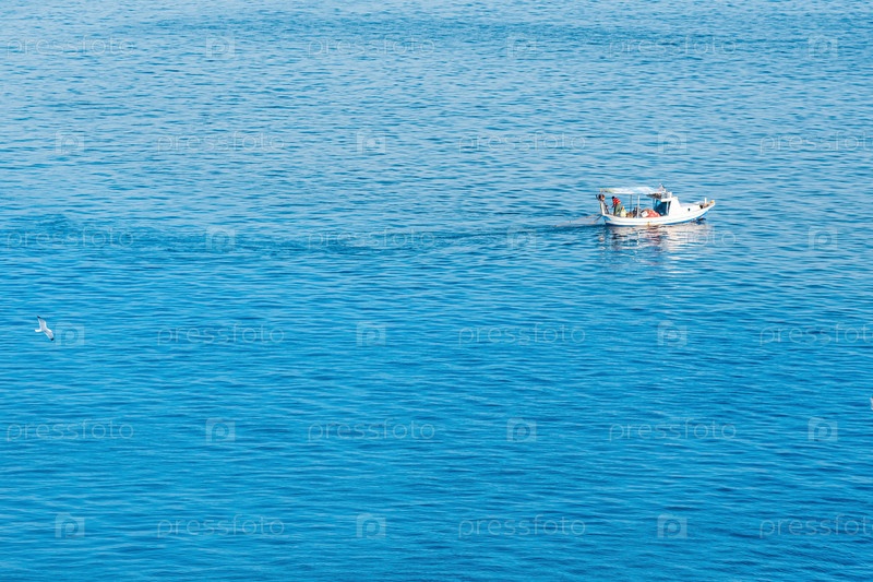Морской пейзаж с одинокой рыбацкой лодкой, вид сверху