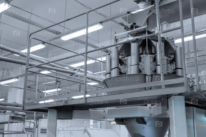 Промышленный аппарат для упаковки сладостей в цехе кондитерской фабрики