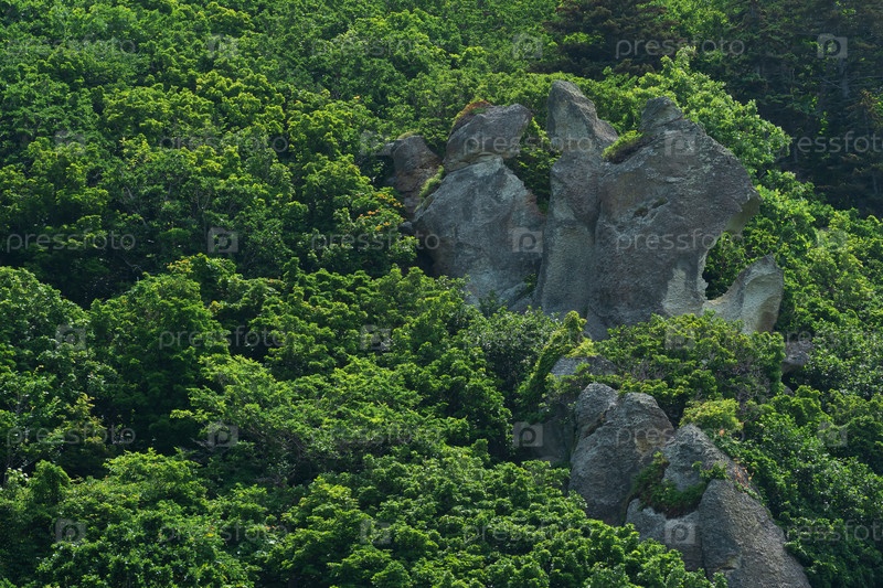 Фон, пейзаж - скалы среди горного широколиственного леса