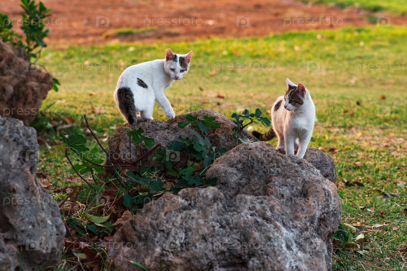 Котята среди валунов на краю поля