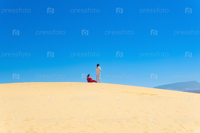 Туристы на склоне бархана Сарыкум в Дагестане