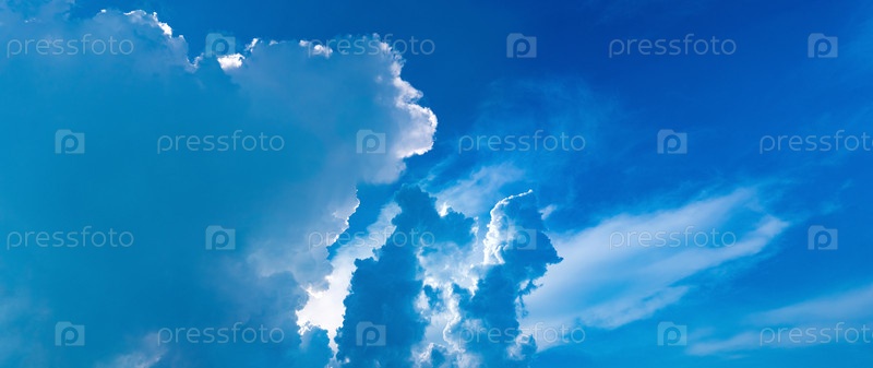 Фон, панорама - высокое голубое небо с кучевыми облаками