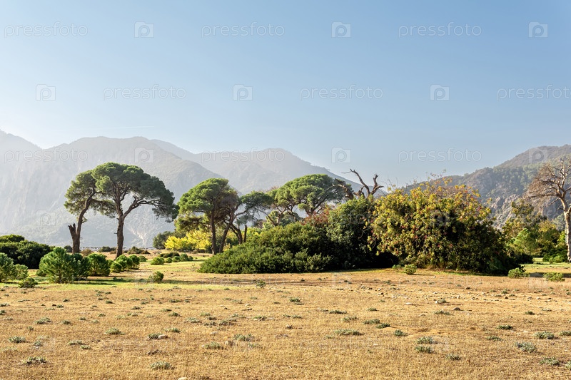 Тропический приморский пейзаж возле деревни Чиралы в национальном парке Бейдаглары в Турции