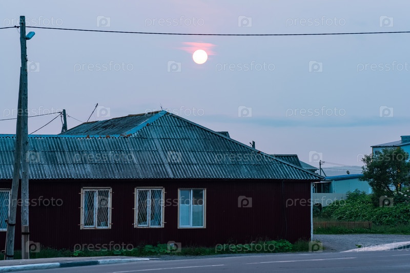 Облачный закат над деревенским домом