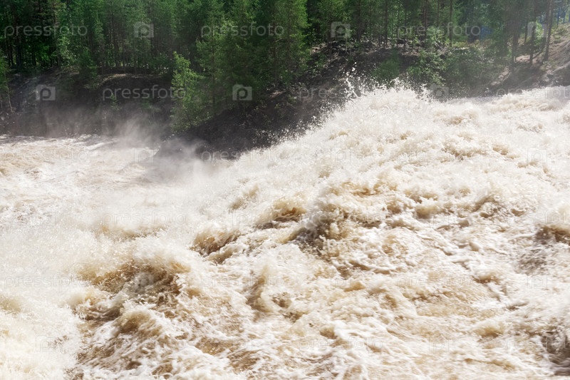 Водопад Гирвас на реке Суне во время холостого сброса воды с Палеозерской ГЭС