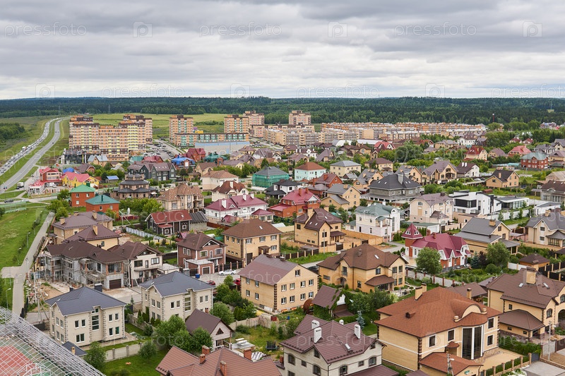 Частные дома в пригороде, вид сверху