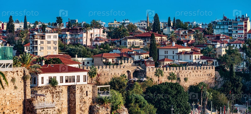 Общий вид сверху на Калеичи, прибрежный исторический центр города Анталья, Турция