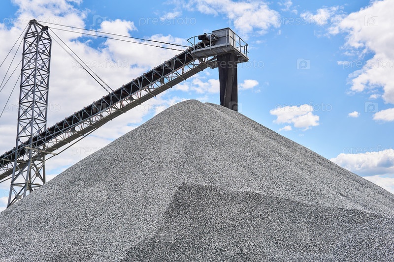 Куча гравия и ленточный конвейер на фоне неба