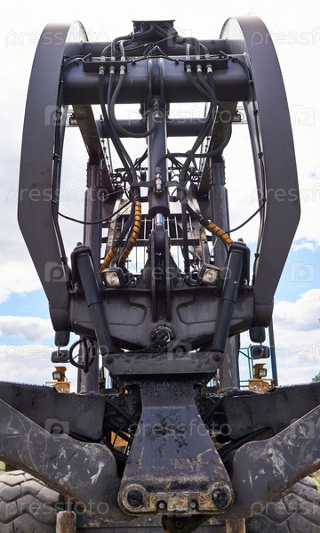 Манипулятор современного грейферного трелевщика двойного назначения крупным планом