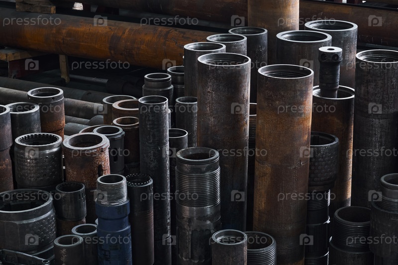 Промышленный фон - ржавое оборудование, в мастерской находятся части турбобуров разного диаметра