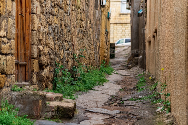 Дверь в узком переулке между домами в махаллях Дербента в историческом центре города
