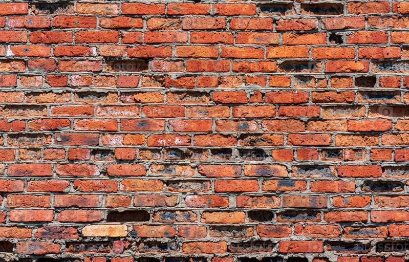 Фон, текстура сильно выветриваемой старой стены из красного кирпича