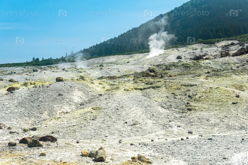 Фумарольное поле на склоне вулкана Менделеева, остров Кунашир