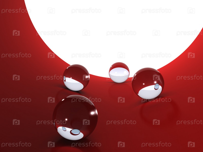 Стеклянные шары на красном фоне