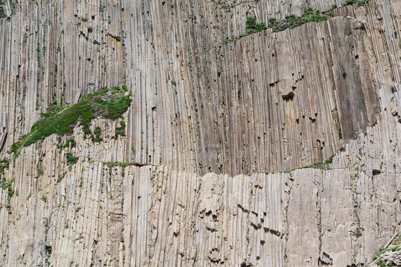 Естественный фон, поверхность скалы, образованная вертикальными базальтовыми колоннами