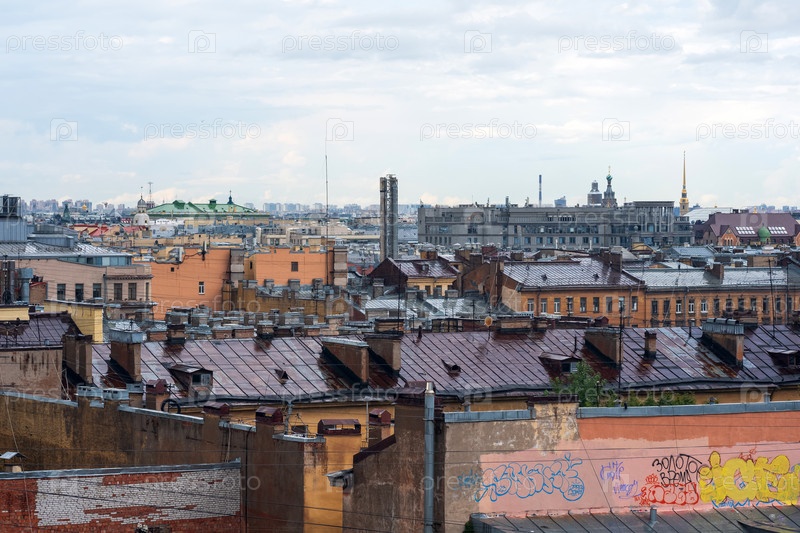 Вид сверху на городские крыши в историческом центре Санкт-Петербурга