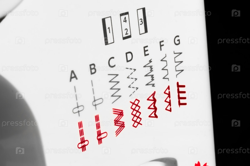 Выбор вариантов шва на современной домашней швейной машине. Значки и обозначения режимов работы на панели управления швейной машины. Селективный фокус