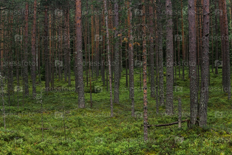 Природный ландшафт, сосновый бореальный лес с моховым подлеском, хвойная тайга