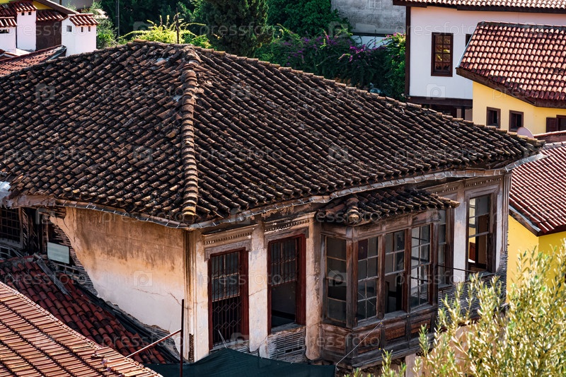 Вид на черепичные крыши старинных домов в историческом центре Антальи, Турция